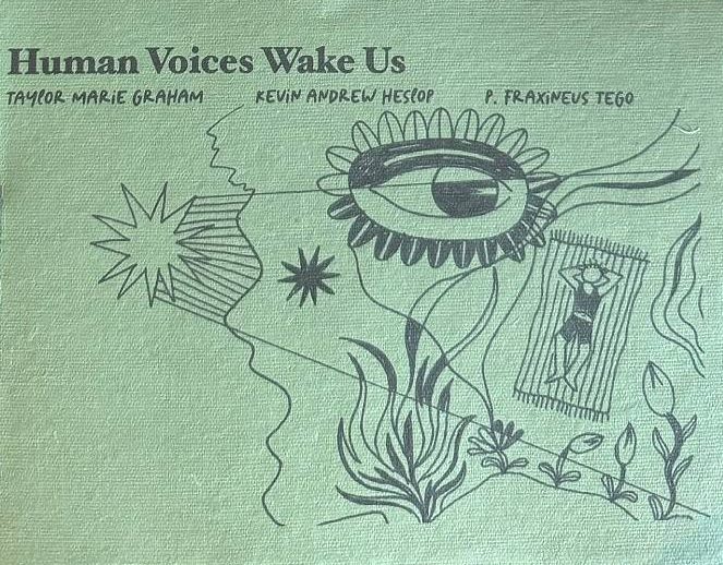 HUMAN VOICES WAKE US is an operatic romp of sparkling new works from Taylor Marie Graham, Kevin Andrew Heslop and Publius Fraxineus Tego, and illustrations by Andrés Garzon Espitia.