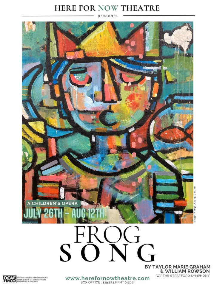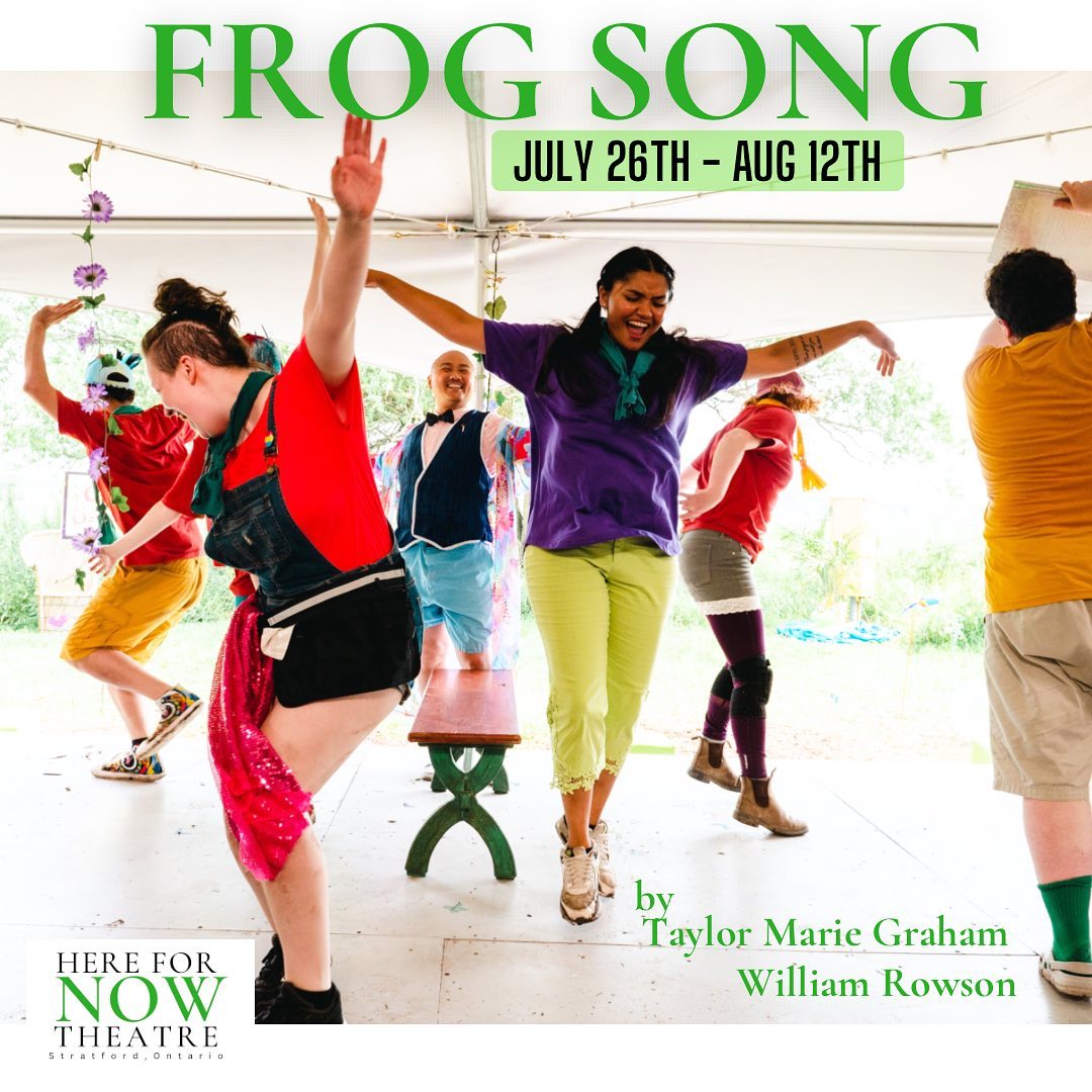 “Stratford’s Here For Now Theatre is presenting Frog Song, an opera – yes, an opera! – for children and never has its tent theatre and its bucolic setting seemed more magical . . . One might expect a “children’s opera” like Frog Song to use simple bubble-gum music but William Rowson has composed a serious operatic score, as befits the music director of the Stratford Symphony Orchestra. For her part, librettist Graham shows keen insight into the angst that accompanies every kid’s journey to self-discovery and self-acceptance. Kudos, too, to Frog Song’s mostly young cast, many at the dawn of their careers, who throw themselves into the action with relish and obvious commitment. Frog Song offers an all too rare opportunity to introduce pre-teens to the special magic that is opera. The kids at the show I attended were rapt.” (OntarioStage, Full Review)